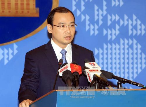 Nguời Phát ngôn Bộ Ngoại giao Lê Hải Bình phát biểu tại buổi họp báo. Ảnh: Phạm Kiên - TTXVN |